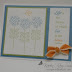 I finally ended up using Stampin' Up!'s Upsy Daisy, stamped in Fresh Snow, this time on a dark card stock (Concord Crush). Then I kissed the stamp with the (retired) Canvas background stamp in Concord Crush ink. The darker colors resulted in a more noticeable pattern, even though the flowers themselves were rather delicate.
